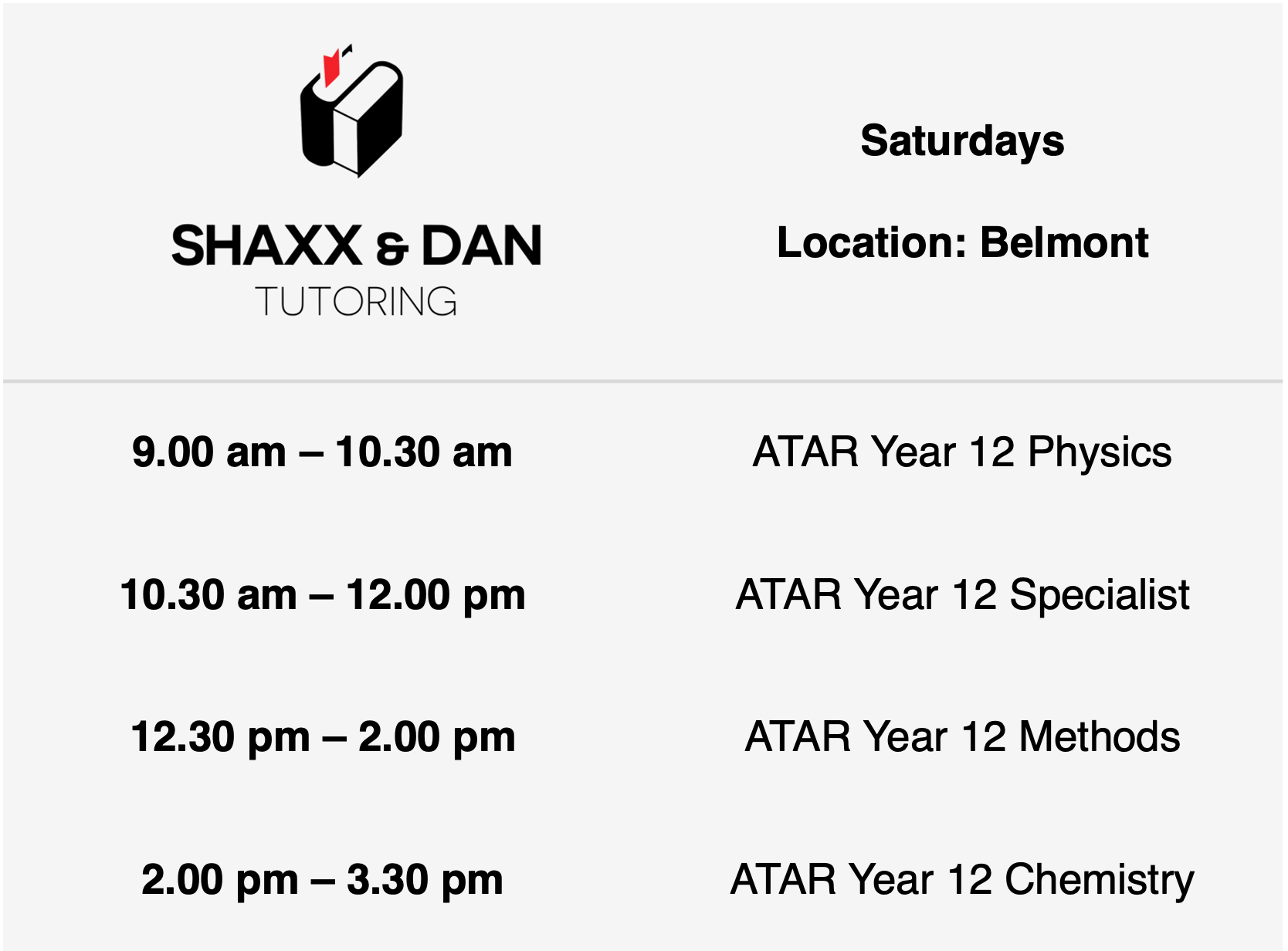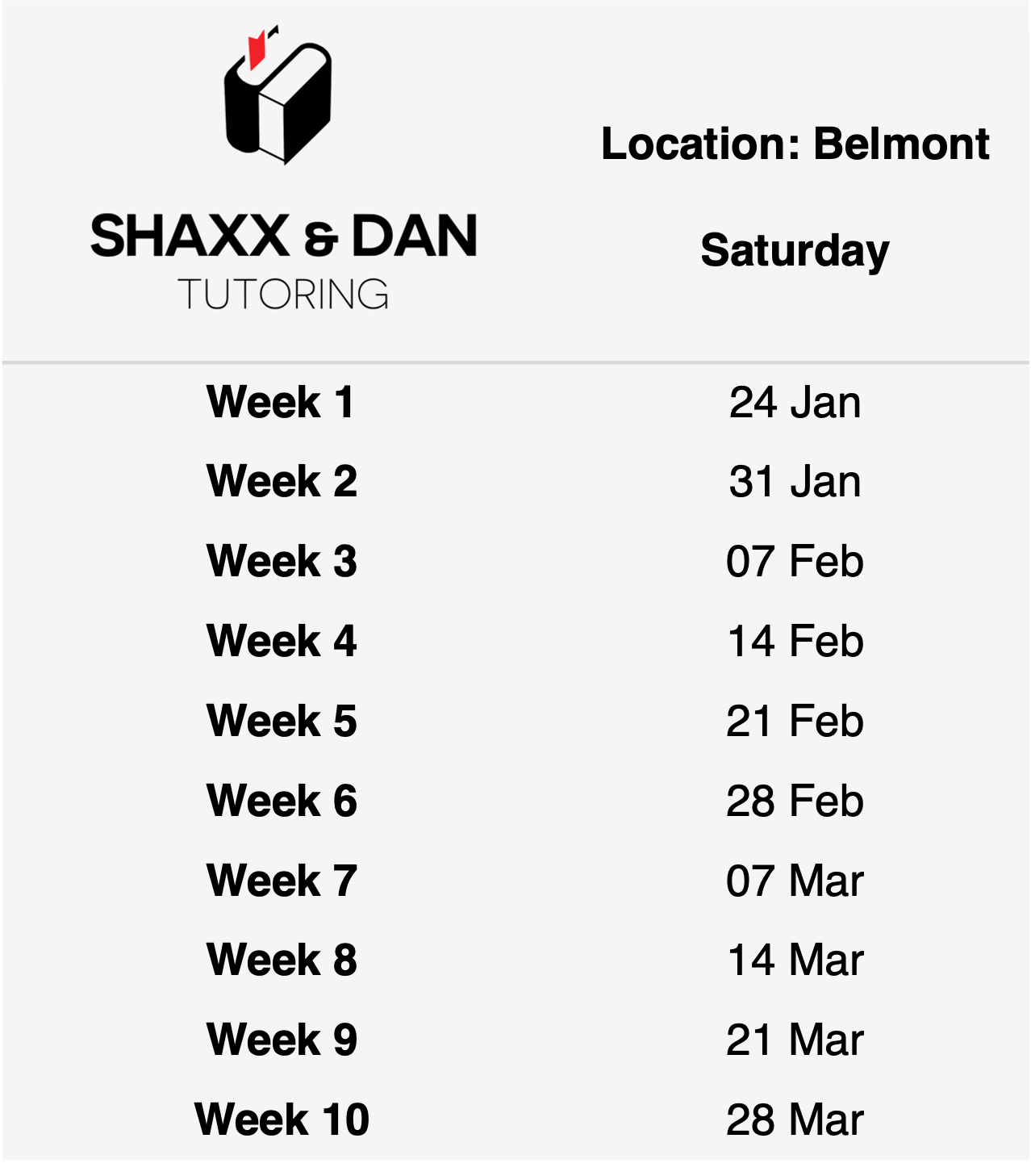 Schedule for Term 1 2026